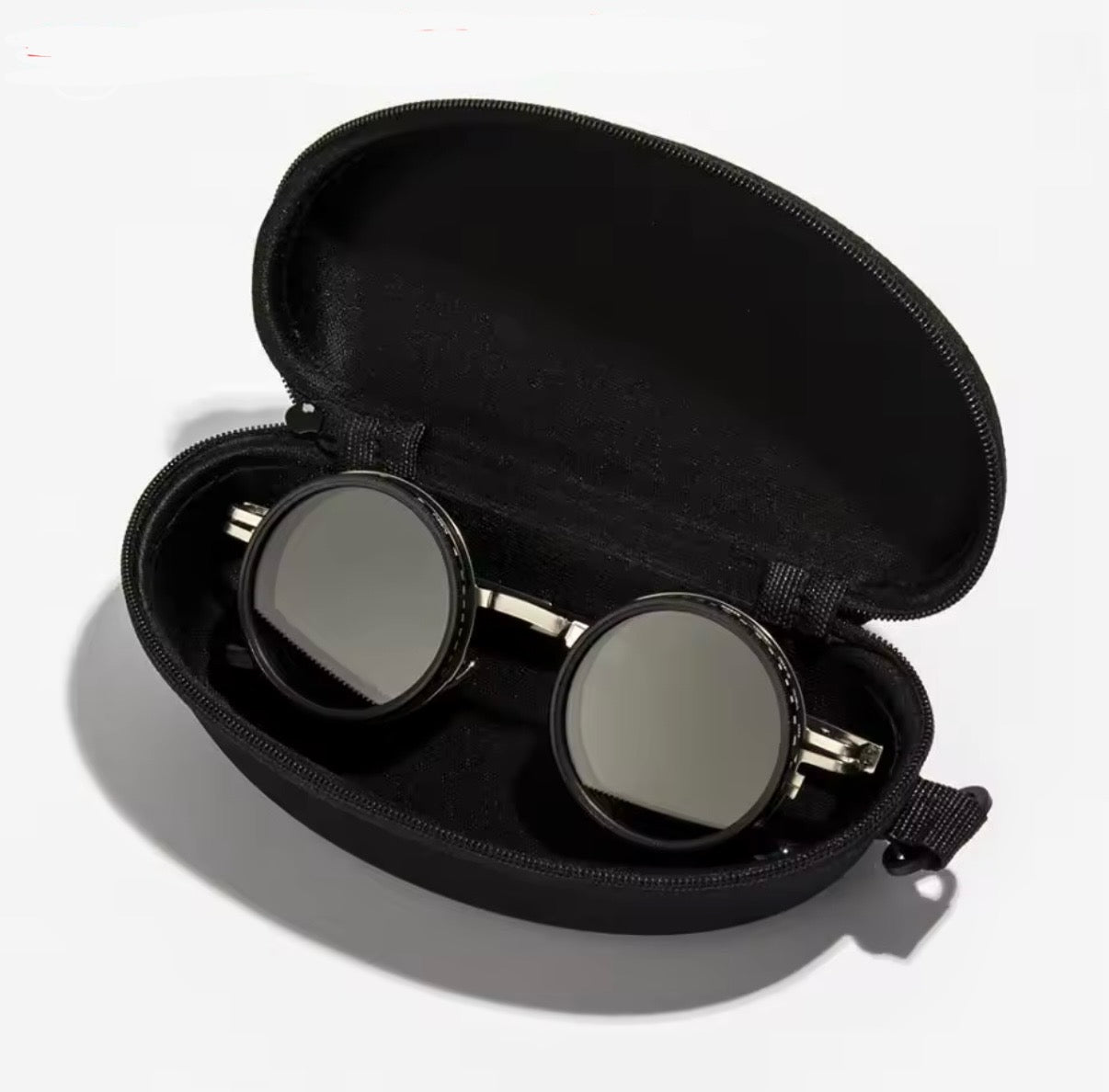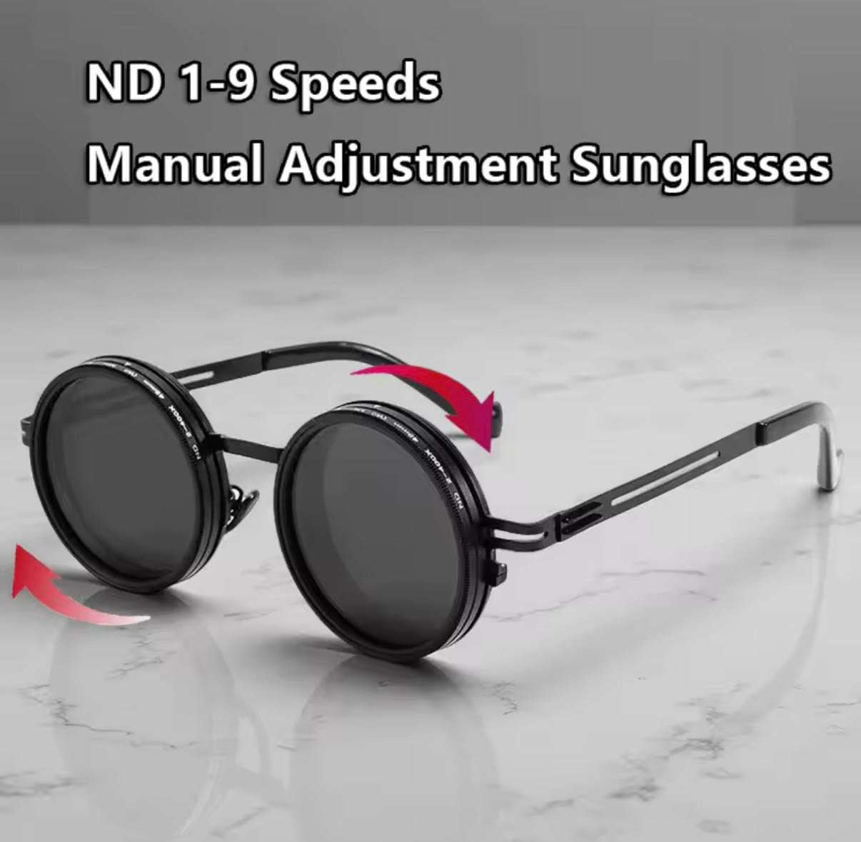 Our dimmable sunglasses use a small dial on the frame to adjust the lens tint. Turn the dial until you find the dim that best suites your setting!